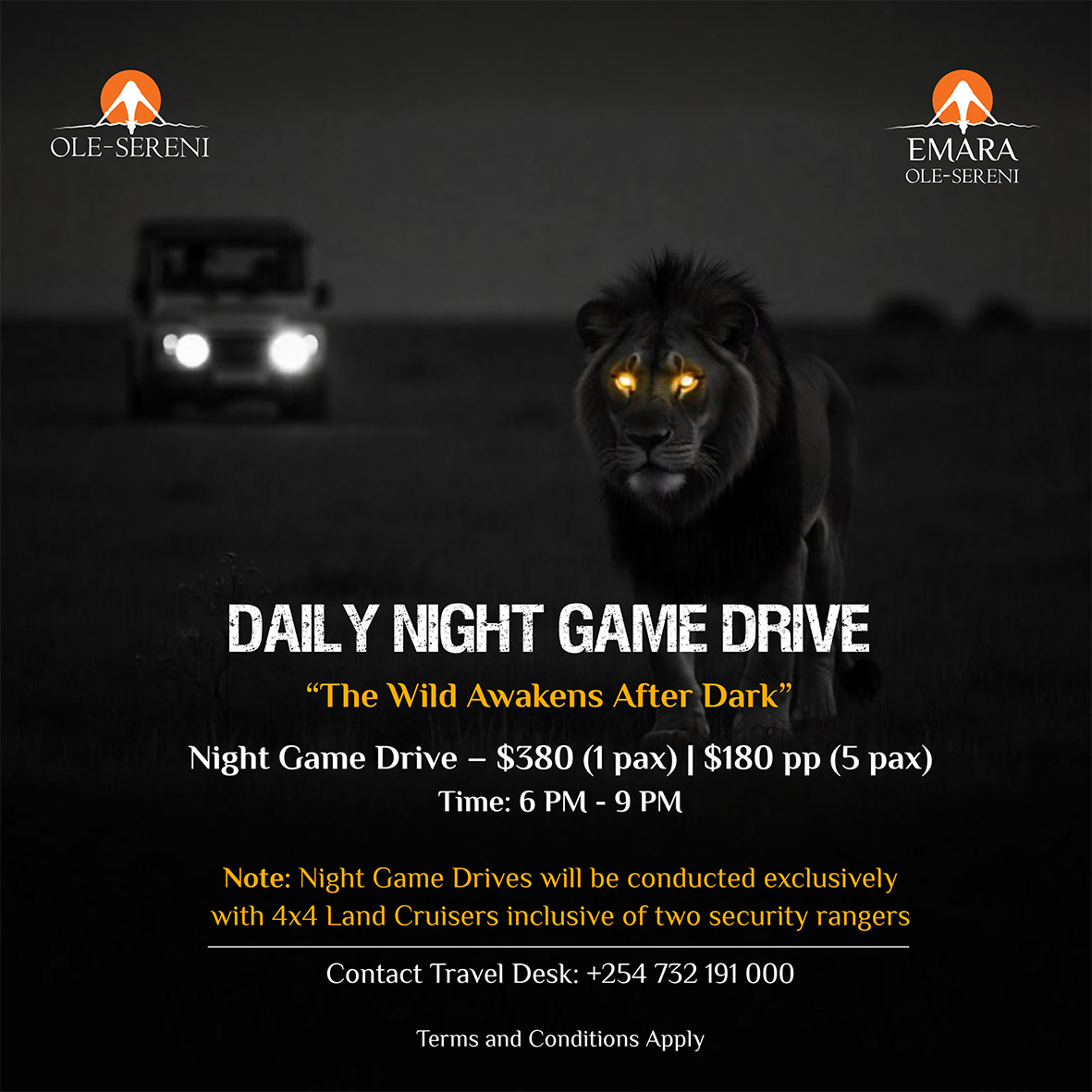 As dusk settles over Nairobi National Park, a different world comes alive. Join our exclusive Daily Night Game Drive and witness the raw beauty of the savannah under the stars.