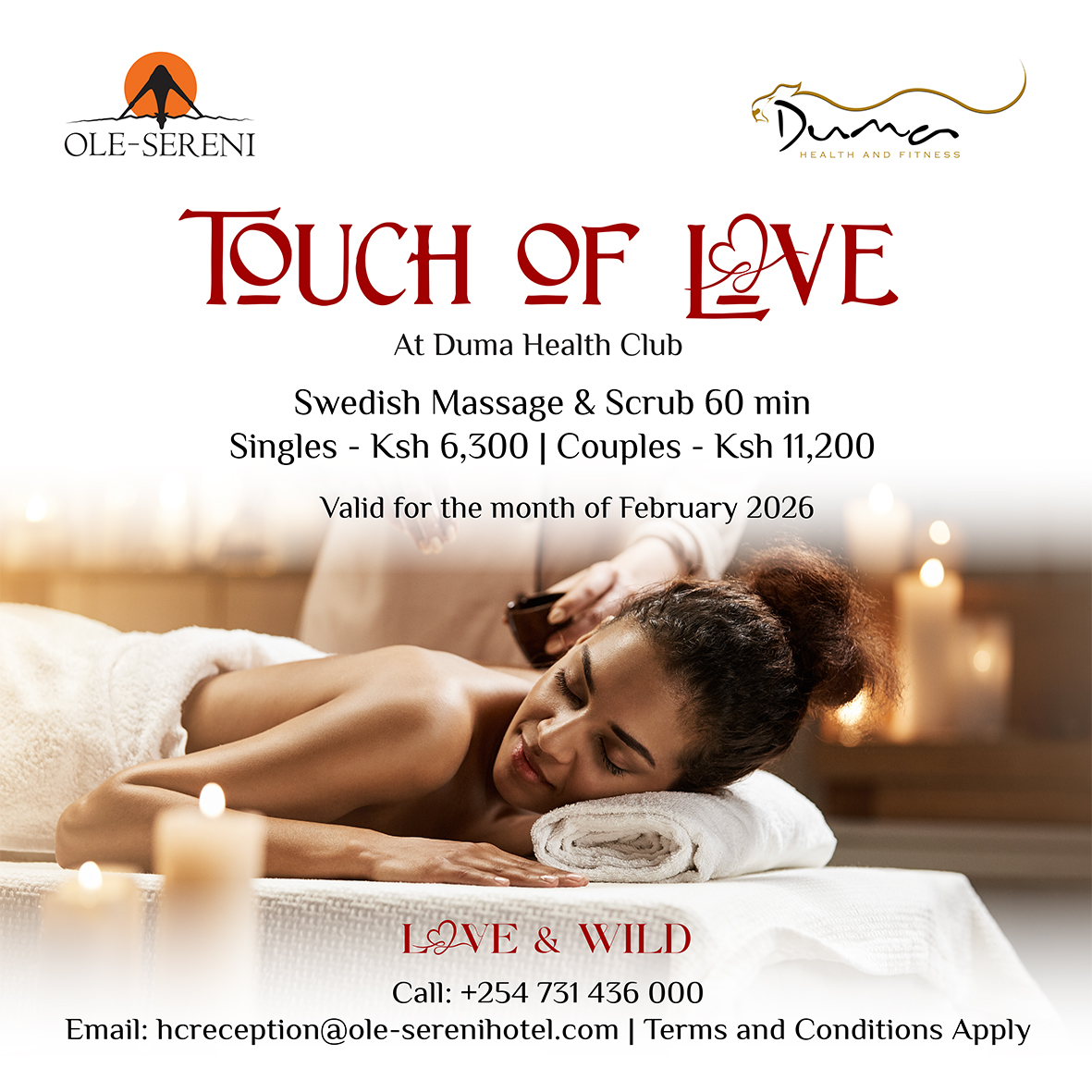 Love is in the little moments and the gentle touch. Experience a thoughtfully curated spa experience at Duma Spa designed to relax the body, calm the mind, and deepen the connection this Valentine’s season. Valid for the month of February. To book an appointment, call +254 731 436000. #OleSereni #LoveAndWild #TouchOfLove #DumaSpa